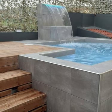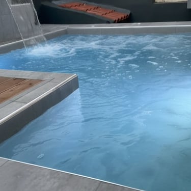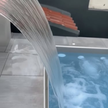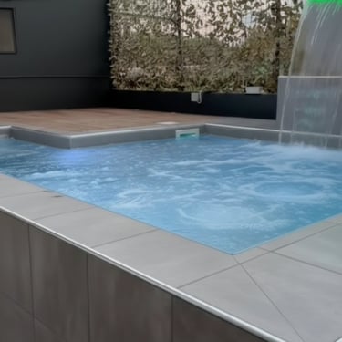 We have successfully completed the installation of this impressive panel pool, equipped with a heated whirlpool and an elegant waterfall that changes the entire relaxation experience.