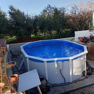 💎 Prefabricated round pool & wooden deck in the beautiful Mades, Heraklion